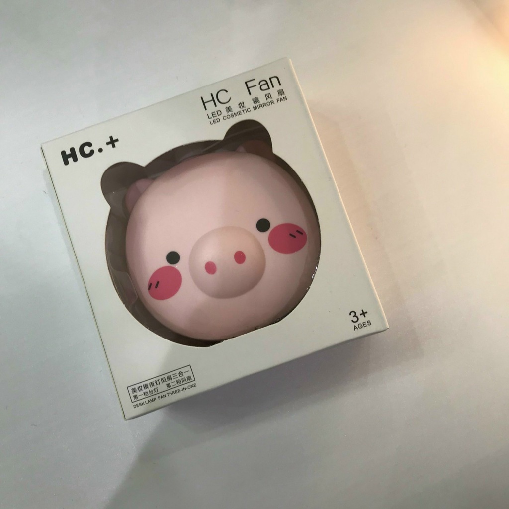 Điện Thoại & Phụ Kiện > Phụ kiện > Khác || (HOT)Quạt mini hình con heo kèm gương có đèn LED có kèm sạc tích điệnCòn hàng