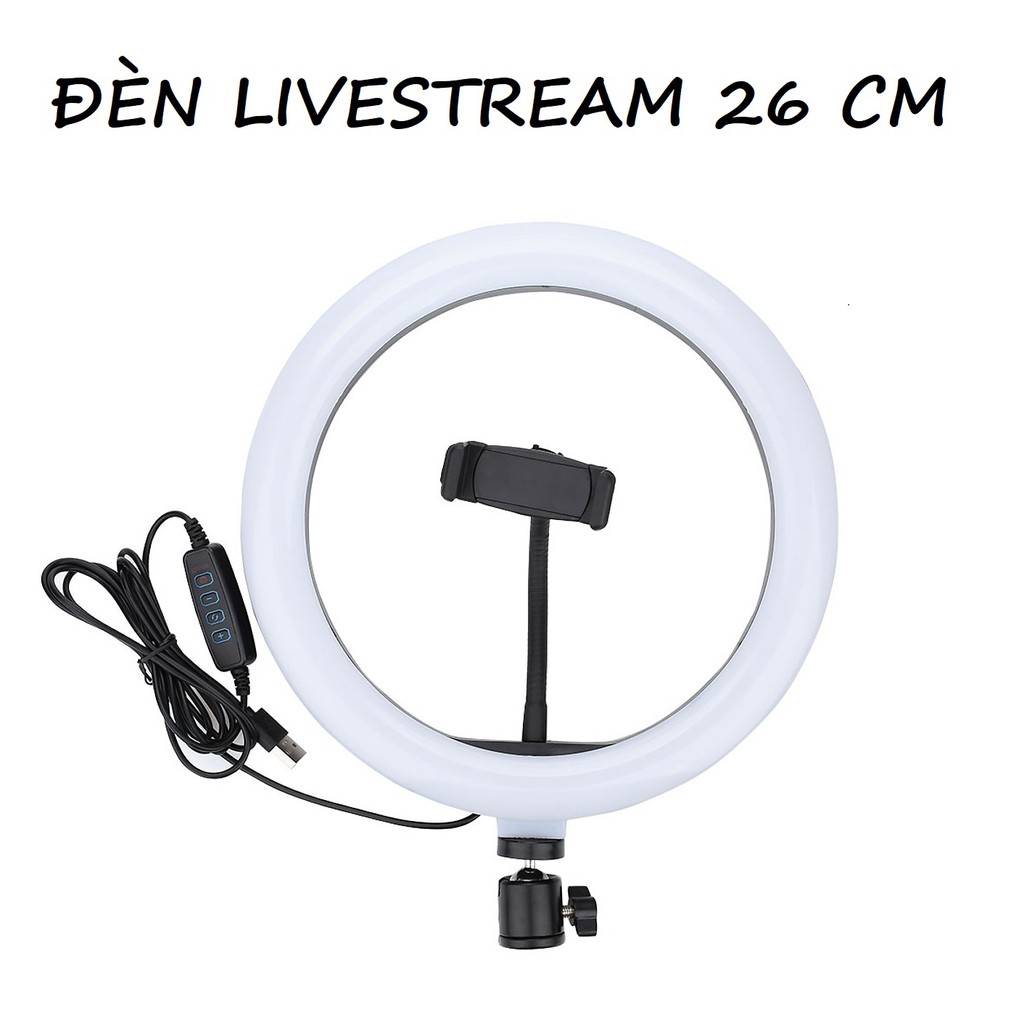 Đèn livestream 26cm là dòng đèn size nhỏ có kích thước 26cm phù hợp nhất livestream bán hàng mỹ phẩm, giày dép, túi xách… Ngoài ra còn hỗ trợ ánh sáng để trang điểm, học bài,… tùy nhu cầu sử dụng.- KÈM 1 ĐẾ 3 CHÂN nhỏ 17cm