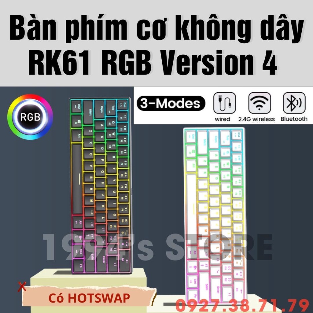 HOTSWAP - Bàn Phím Cơ RK61 Version 4.0 Bluetooth 5.1 - Wireless 2.4Ghz - Cáp Type C - Phần mềm chỉnh Led RGB và Custom