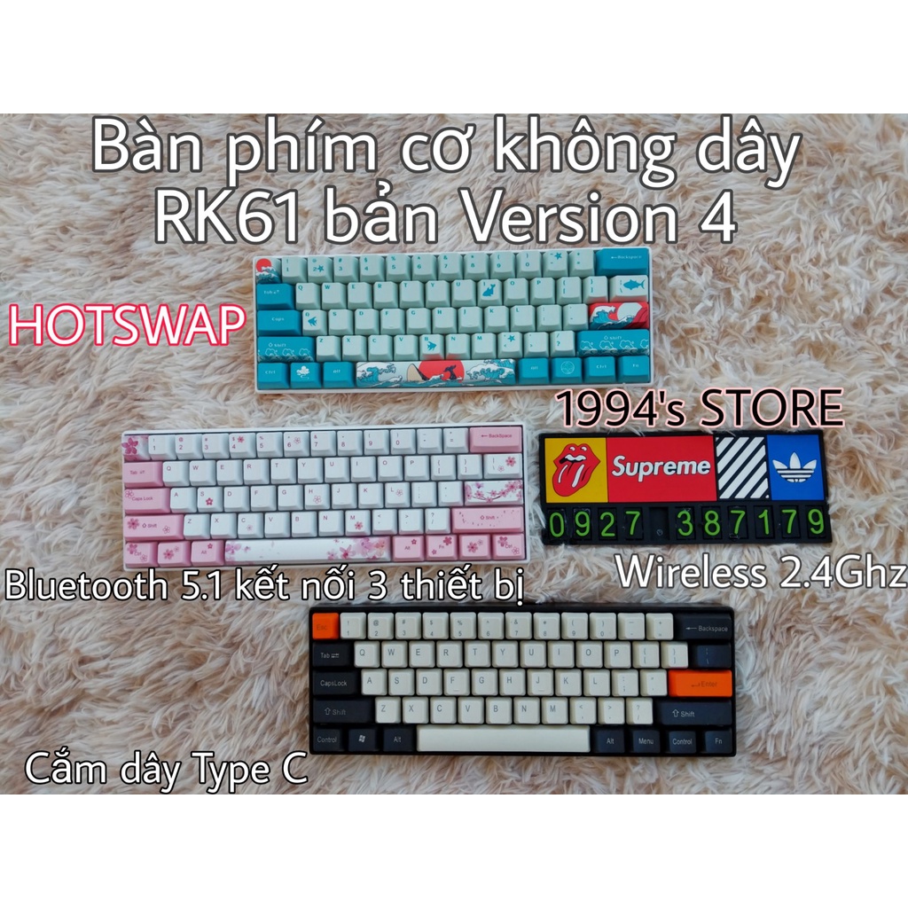 🔥 Đây là bản Version 4 mới nhất của RK61 và nó chia làm 2 phân loại1. Có Bluetooth 5.1 + Wireless 2.4Ghz + Kết nối cắm dây Type C