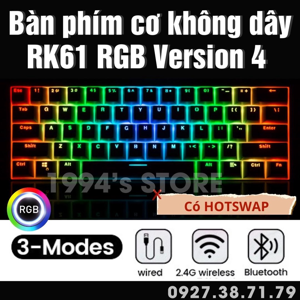 HOTSWAP - Bộ Kit Bàn Phím Cơ RK61 Version 4.0 Không Dây - Bluetooth 5.1 - Wireless 2.4G - Led RGB Custom bằng phần mềm