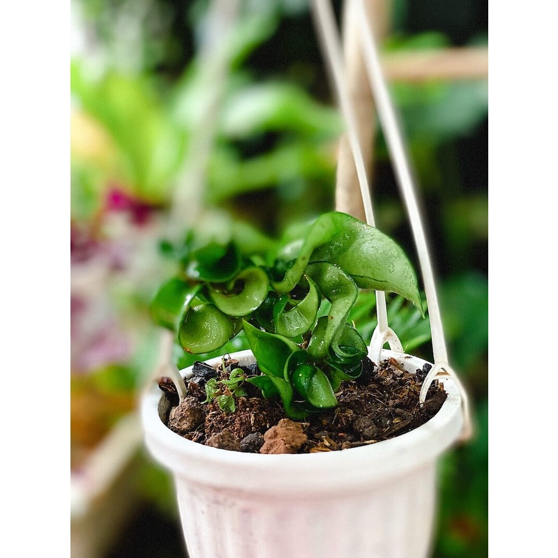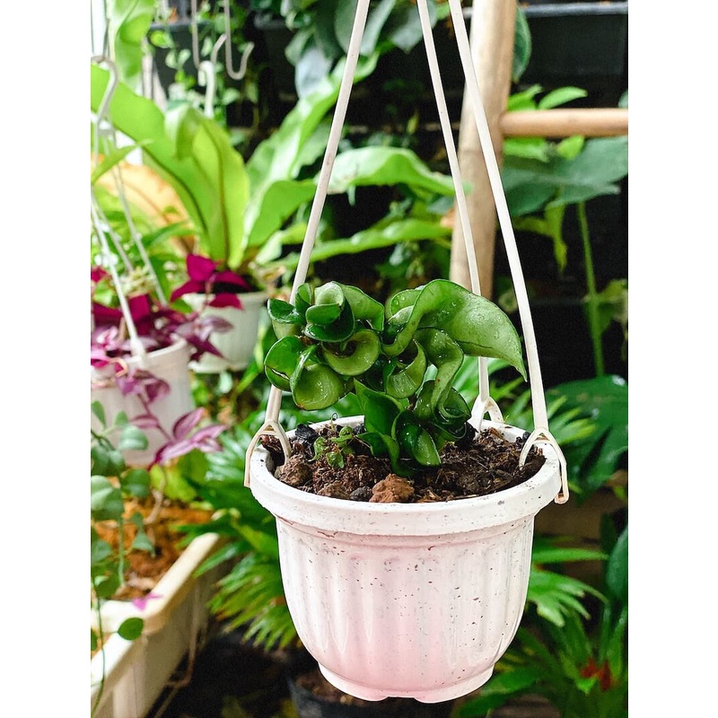 Cây Hoya carnosa Compacta (Lan Cẩm Cù Lá Xoắn Hoa Phớt Hồng) chậu treo bí ngô mini