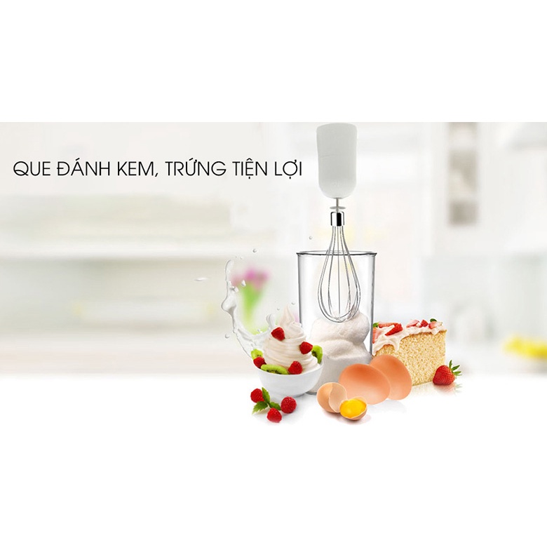 - Máy có cây đánh trứng giúp bạn làm bánh, đánh bông kem tươi, trộn bột, đánh trứng dễ dàng