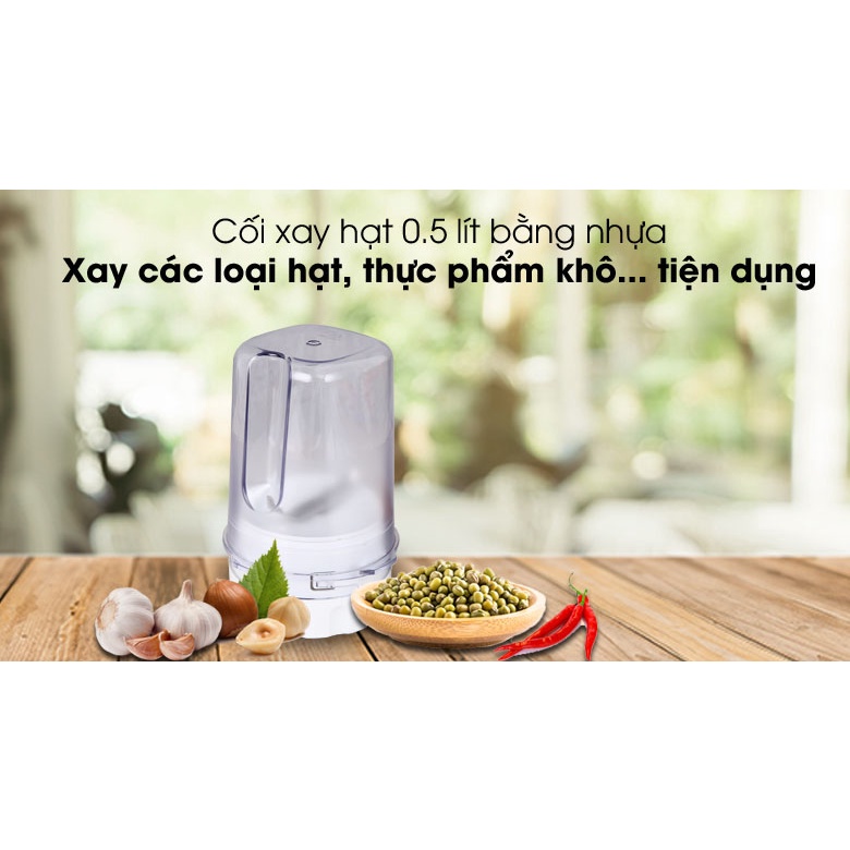 - Cối xay thực phẩm khô 0.5 lít dùng xay tiêu, xay các loại hạt…Lưỡi dao hình răng cưa làm bằng thép không gỉ kết hợp công suất 700 W hoạt động mạnh mẽ
