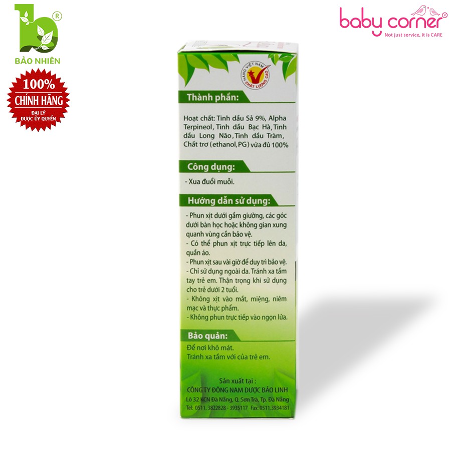- Bình xịt Fly Away Bảo Nhiên được làm từ 100% thảo dược thiên nhiên: tinh dầu sả, tinh dầu bạc hà, tinh dầu long não, tinh dầu tràm. An toàn cho bé.