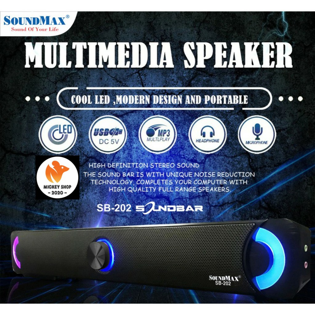 [ HSSV ] Loa soundbar SoundMax SB-202/2.0 - CHÍNH HÃNGLoa soundbar SoundMax SB-202/2.0 được làm từ vỏ nhựa màu đen giúp bạn sử dụng loa trong thời gian lâu mà không lo bị dẫn nhiệt. Kết nối đơn giản, dễ sử dụng thiết kế gọn nhẹ dễ dàng mang theo bất cứ nơi đâu.