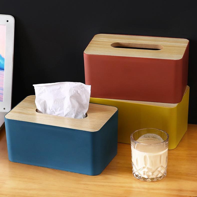 ⭐ Hộp đựng khăn giấy bằng nhựa chữ nhật nắp gỗ phù hợp sử dụng trong gia đình, khách sạn ...