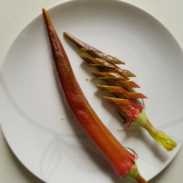 👉Đậu bắp đỏ là giống cây mới du nhập vào Việt Nam quả có màu sắc đỏ bắt mắt và chất lượng ngon hơn đậu bắp xanh quen thuộc.