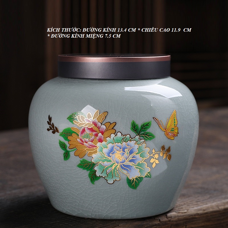 Hũ, Bình đựng trà bằng sứ men ngọc cao cấp với họa tiết đẹp mắt