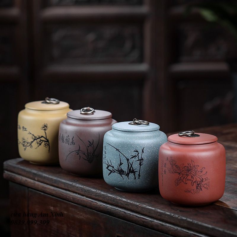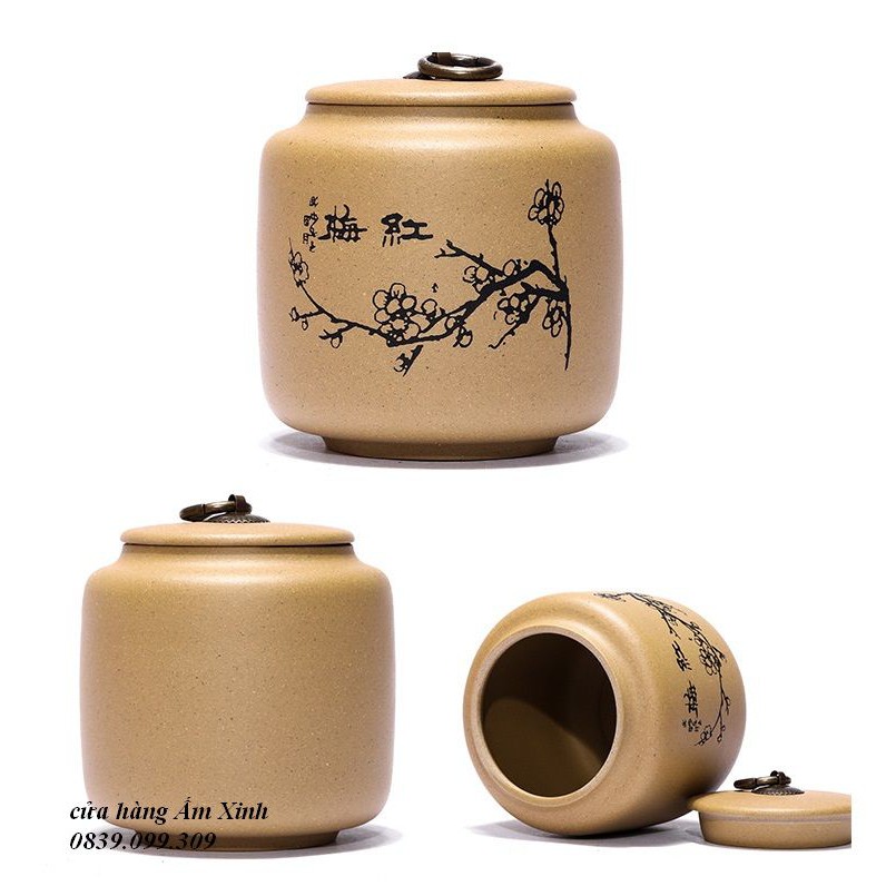 Hũ, Bình đựng trà tử sa (cỡ lớn, rất khít)– Chất liệu: nguyên khoáng Tử Sa (Tử nê, Thanh thủy nê, Thiên Thanh Nê, Đoạn nê)