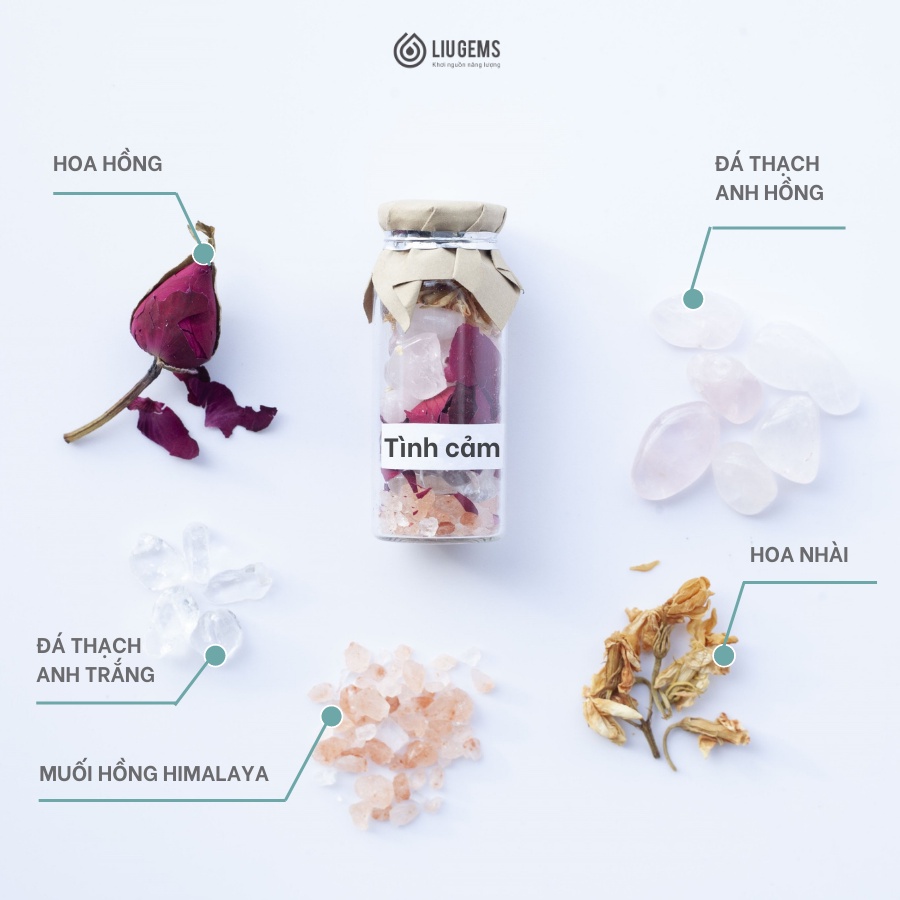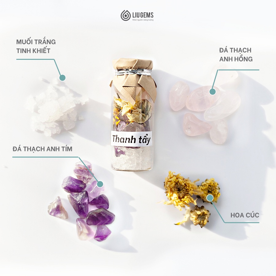 Hũ Đá Thanh Tẩy Năng Lượng Liugems, Mix Đá, Thảo Mộc, Muối Hồng Himalaya