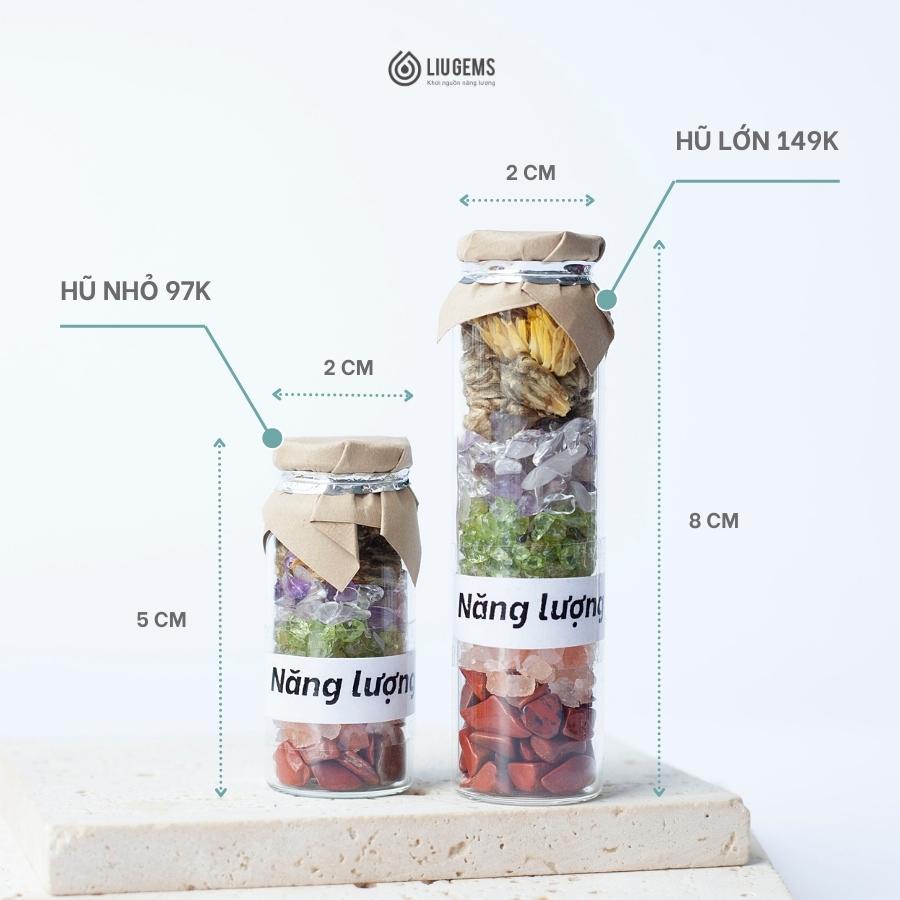 Hũ đá may mắn là sự kết hợp của các loại đá phong thủy cùng hoa khô thảo mộc tự nhiên được mix theo công thức độc quyền của Liugems.THÔNG TIN SẢN PHẨM: