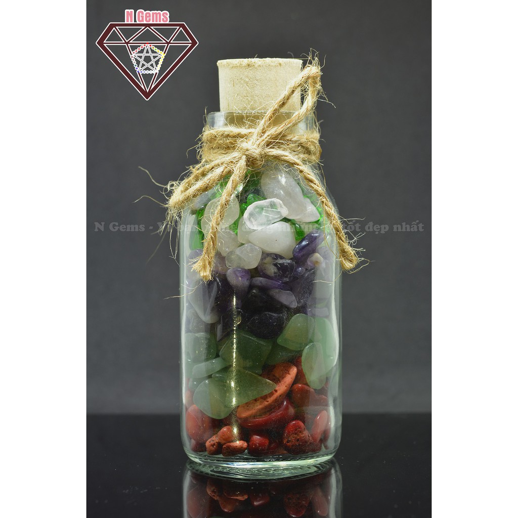 Hủ đá vụn nhiều loại đá thanh tẩy nhiều màu sắc dùng để trang trí nhà hoặc làm quà tặng hoặc để bàn làm việc loại 100ml