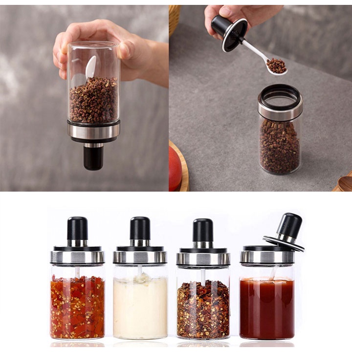 ⭐Đặc biệt, lọ gia vị được thiết kế kèm sẵn muỗng, phết giúp việc lấy gia vị trở nên dễ dàng, sạch sẽ