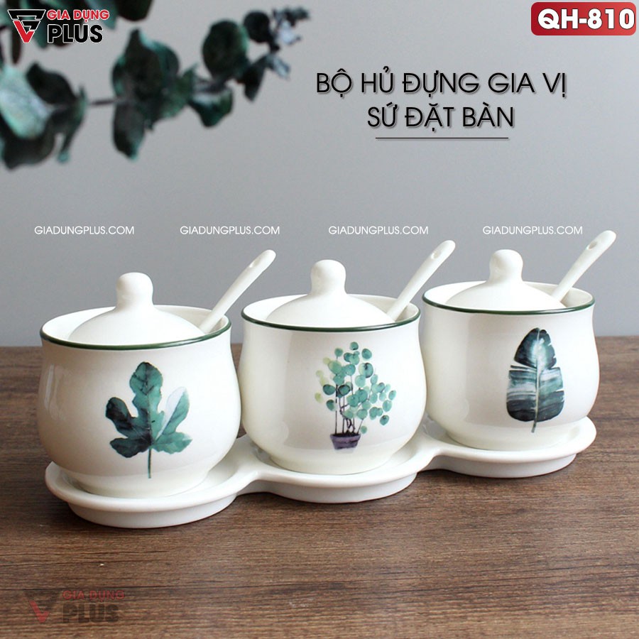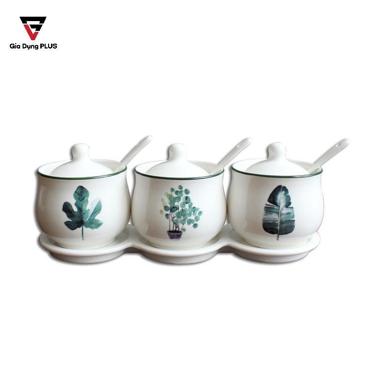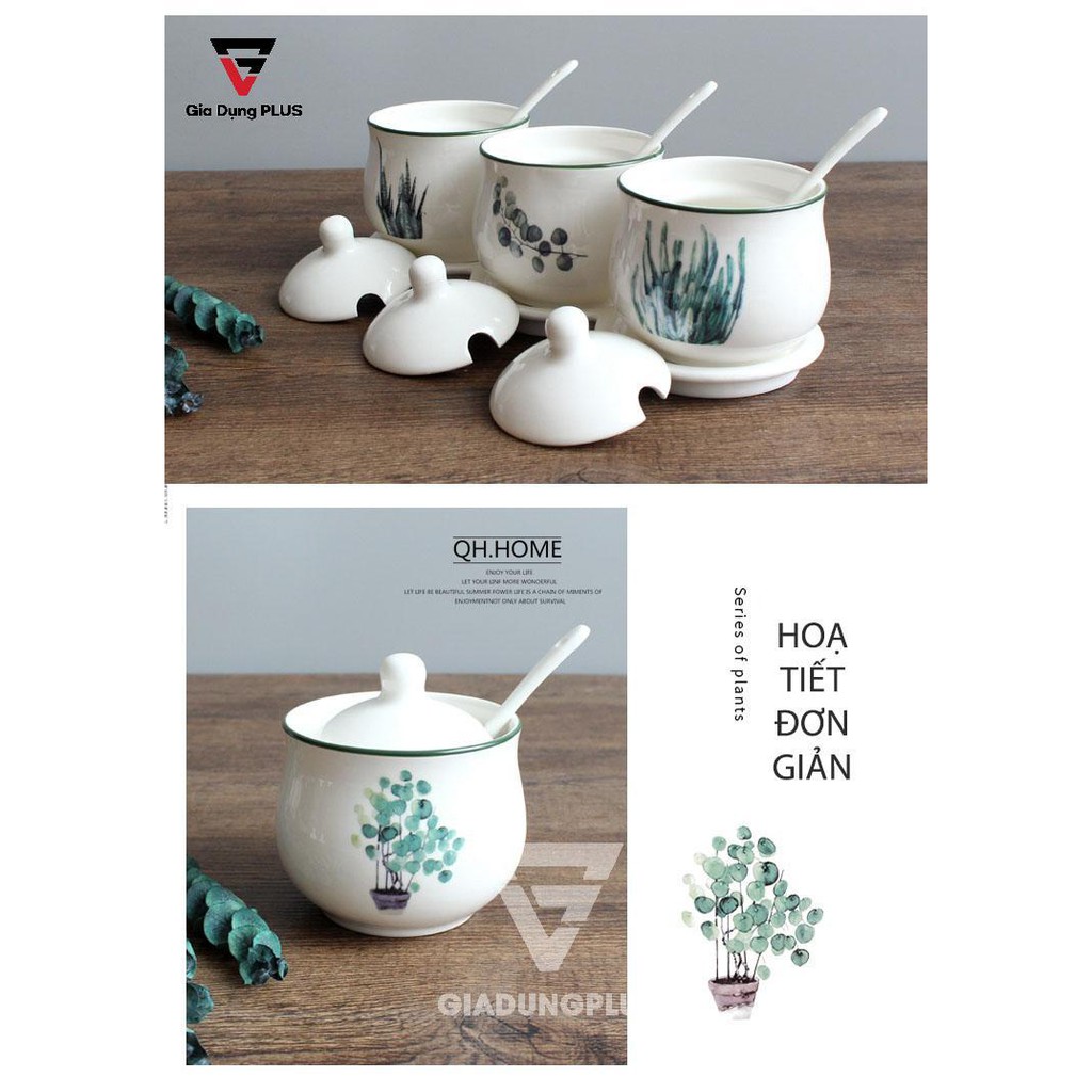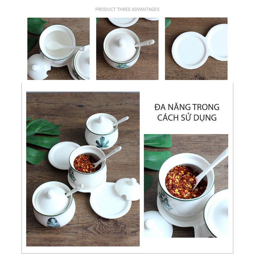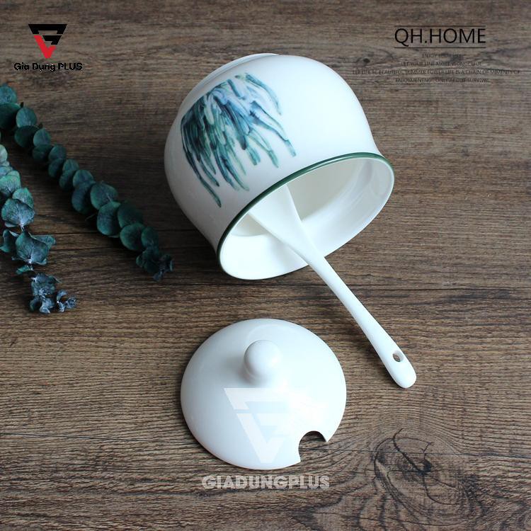 - Bộ đã bao gồm nắp bằng sứ & muỗng gia vị bằng sứ kèm theo.