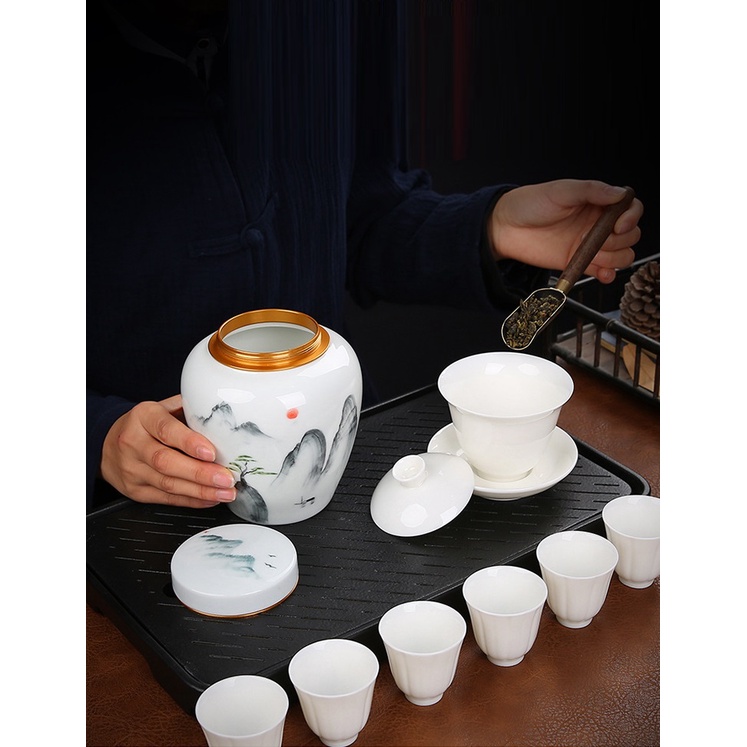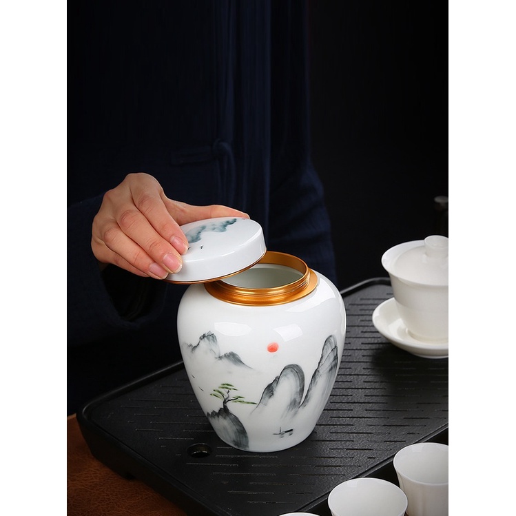 Giới thiệu Hũ đựng trà bằng sứ trắng tinh khiết nắp đồng vặn ren siêu khít