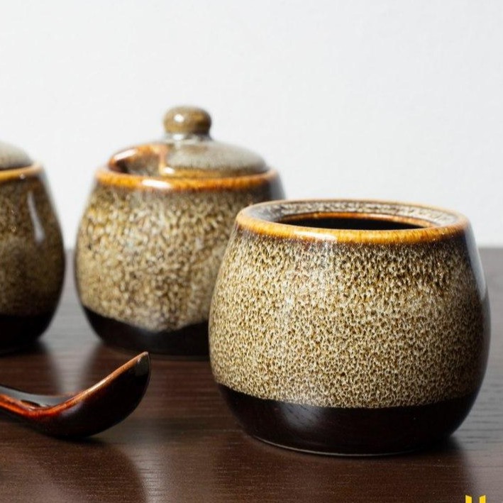 Hủ đường có thìa men Gấm vàng - sản xuất tại xưởng gốm sứ Gia Oanh authentic bat trang