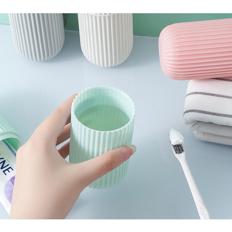 Nhà cửa & Đời sống > Đồ dùng phòng tắm > Kệ đựng bàn chải, kệ nhả kem đánh răng || Hũ Hộp Đựng Bàn Chải Và Kem Đánh Răng Kiểu TRÒN CÓ VÂN S8 (Kiêm 2 Cốc) - Khi Đi Du Lịch, Công TácCòn hàng