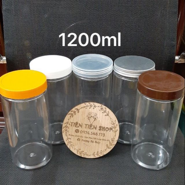 Hũ nhựa pet trong 1200ml nắp vặn chọn màu