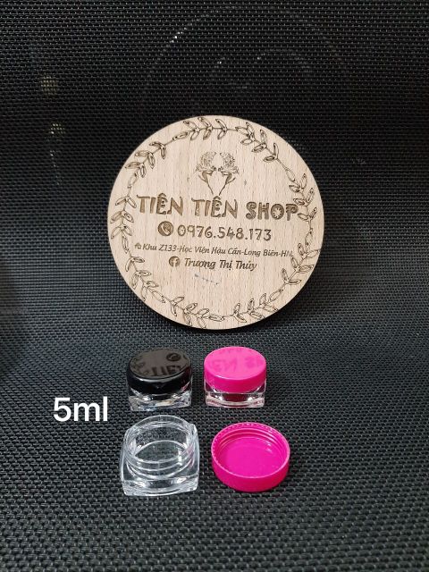 Giới thiệu Hũ nhựa vuông 5ml thân trong nắp đen, nắp hồng