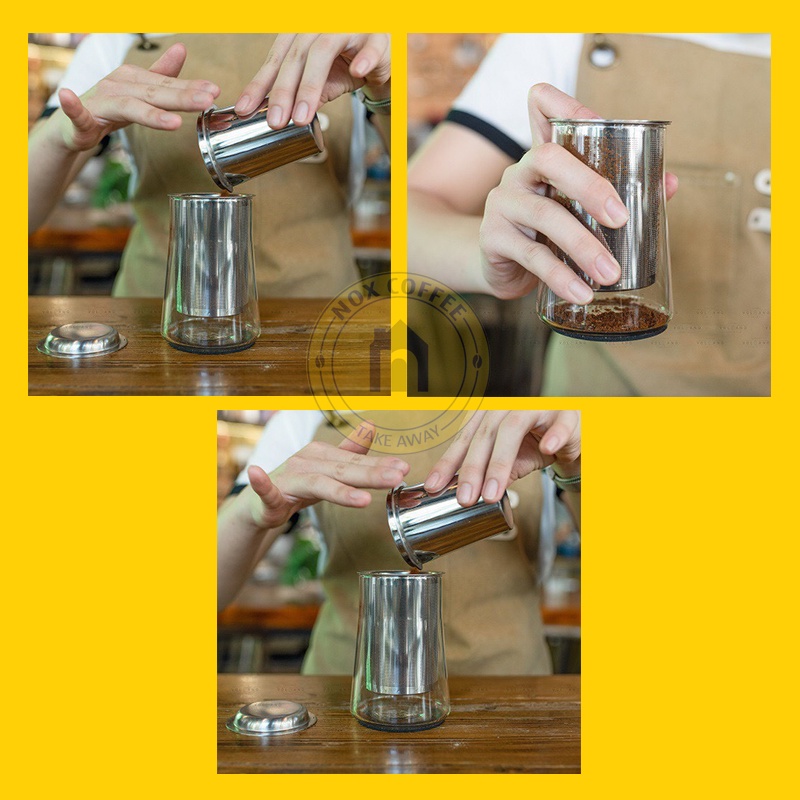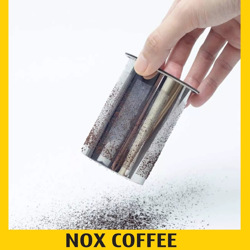Bên trong hũ là lớp lưới sàng đặc biệt giúp loại bỏ bột cám, tác nhân tạo vị đắng gắt khi pha cà phê. Khi loại bỏ được bột cám, cà phê của bạn sẽ trở nên cân bằng, không bị gắt, hương vị cũng thơm ngon hơn.