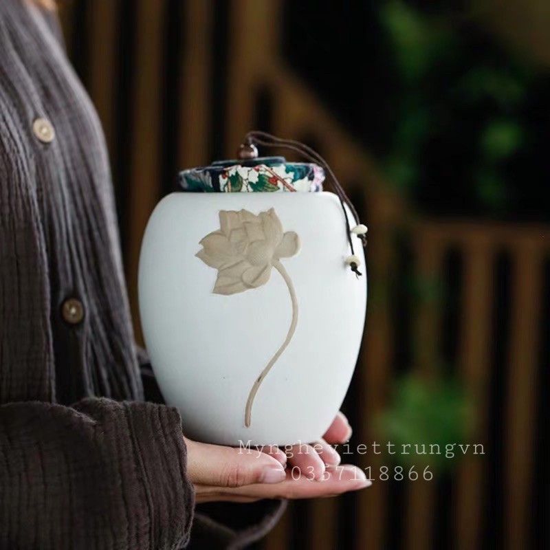 Giới thiệu Hũ Sen Trắng Nắp Gấm Sang Trọng