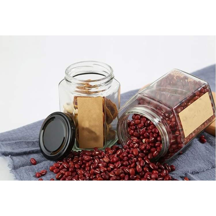 hủ thủy tinh cạnh lục giác, nắp thiếc chống tràndung tích 180ml