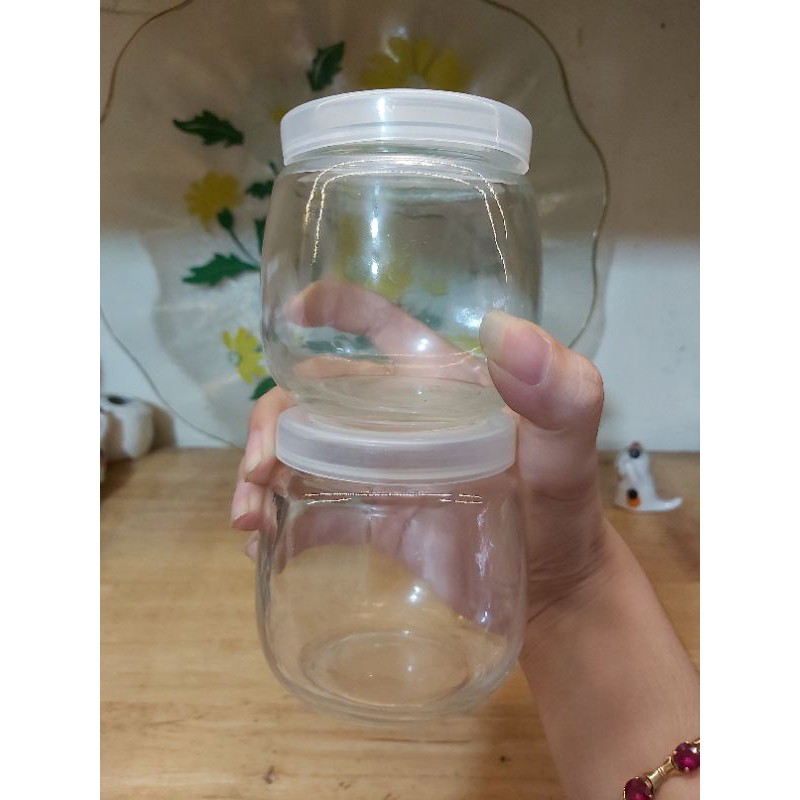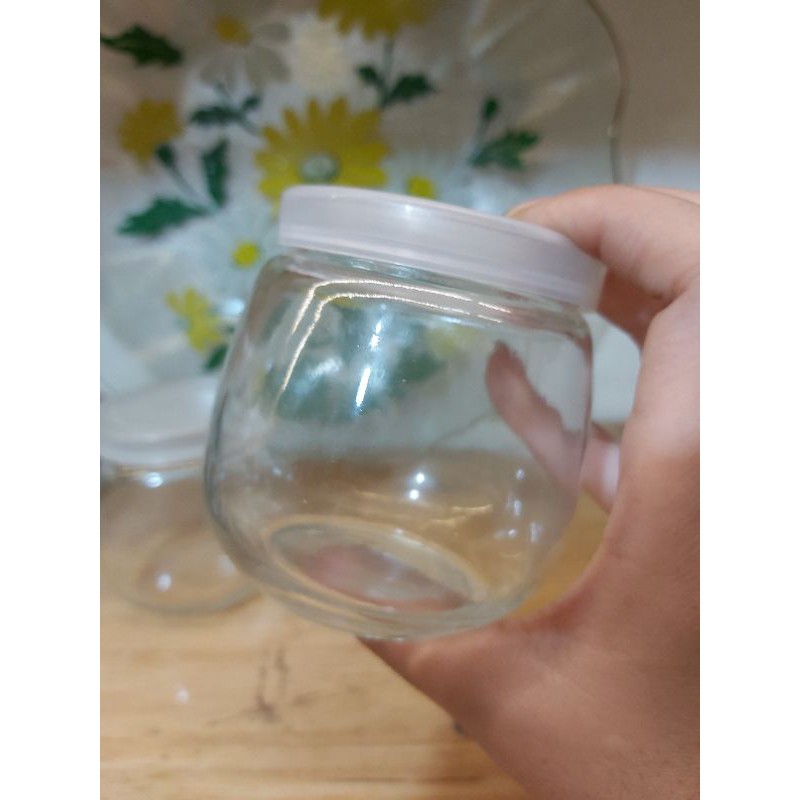 hủ thủy tinh làm sữa chua thân lùn dáng béo trònnắp nhựa an toàn