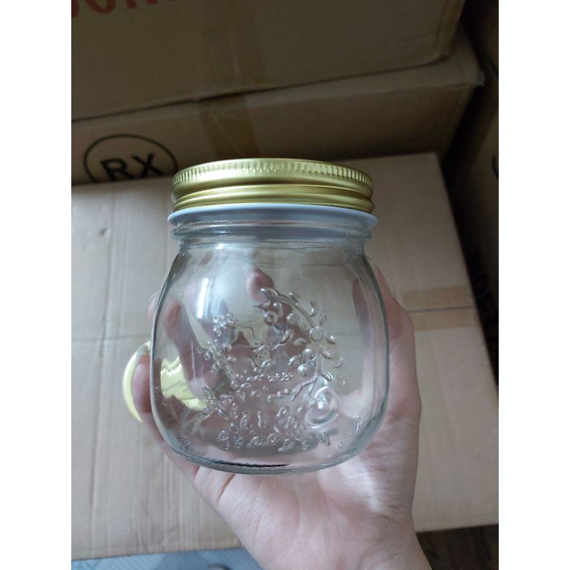 hủ thủy tinh hoa nổi 3D nắp nhômdung tích 300ml