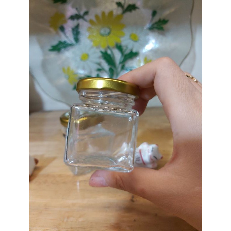 Hủ thủy tinh 50ml thân vuông nắp thiếc