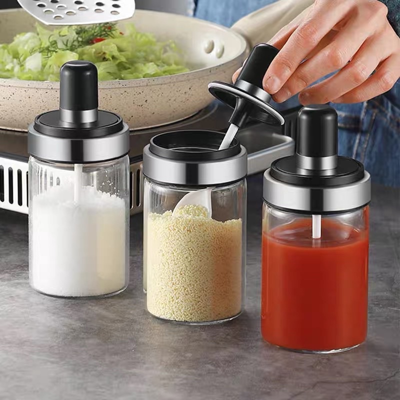 Hũ Thủy Tinh Đựng Gia Vị Cao Cấp Dành Cho Nhà BếpThủy tinh trong suốt - kèm muỗng nhựa bên trong