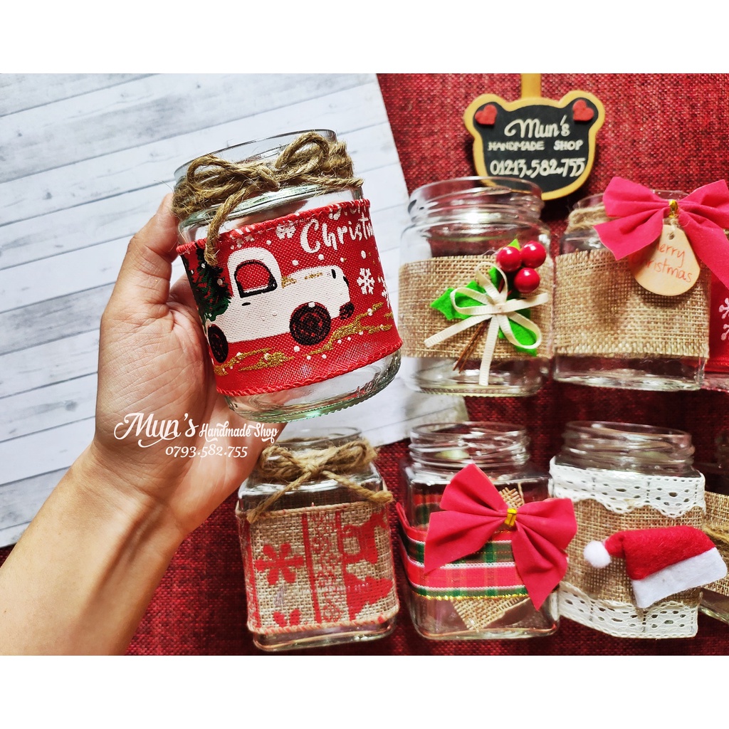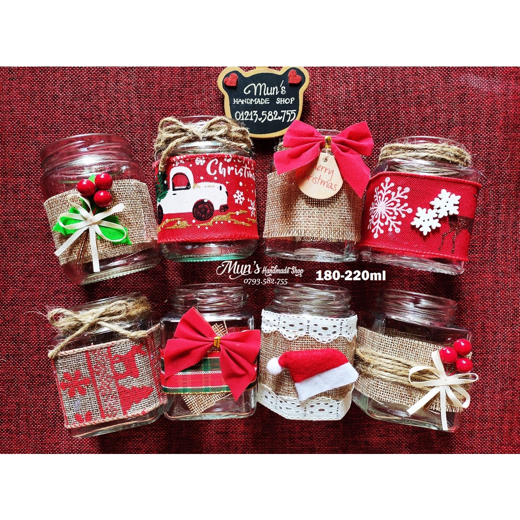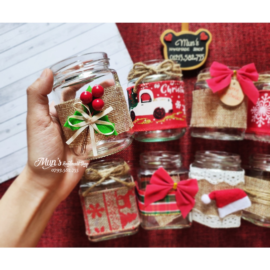 Hũ thủy tinh Giáng Sinh trang trí sẵn🎄 Mẫu 1->8: Hũ tròn / vuông / lục giác 180-220ml không kèm nắp.