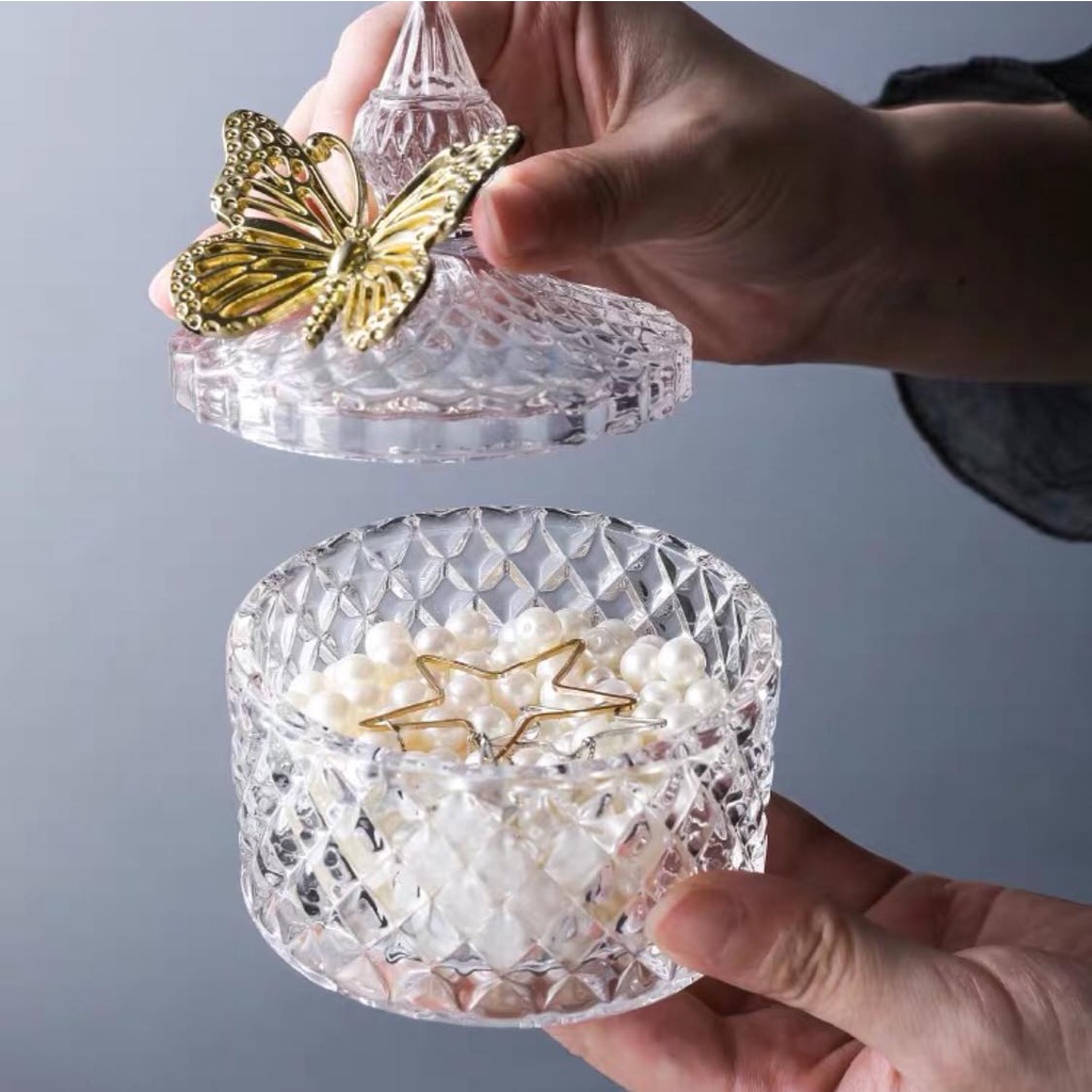 Hũ thủy tinh họa tiết bướm, kiểu dáng độc lạ, nhiều size, tinh tế, hũ để trang sức, decor hoặc kẹo
