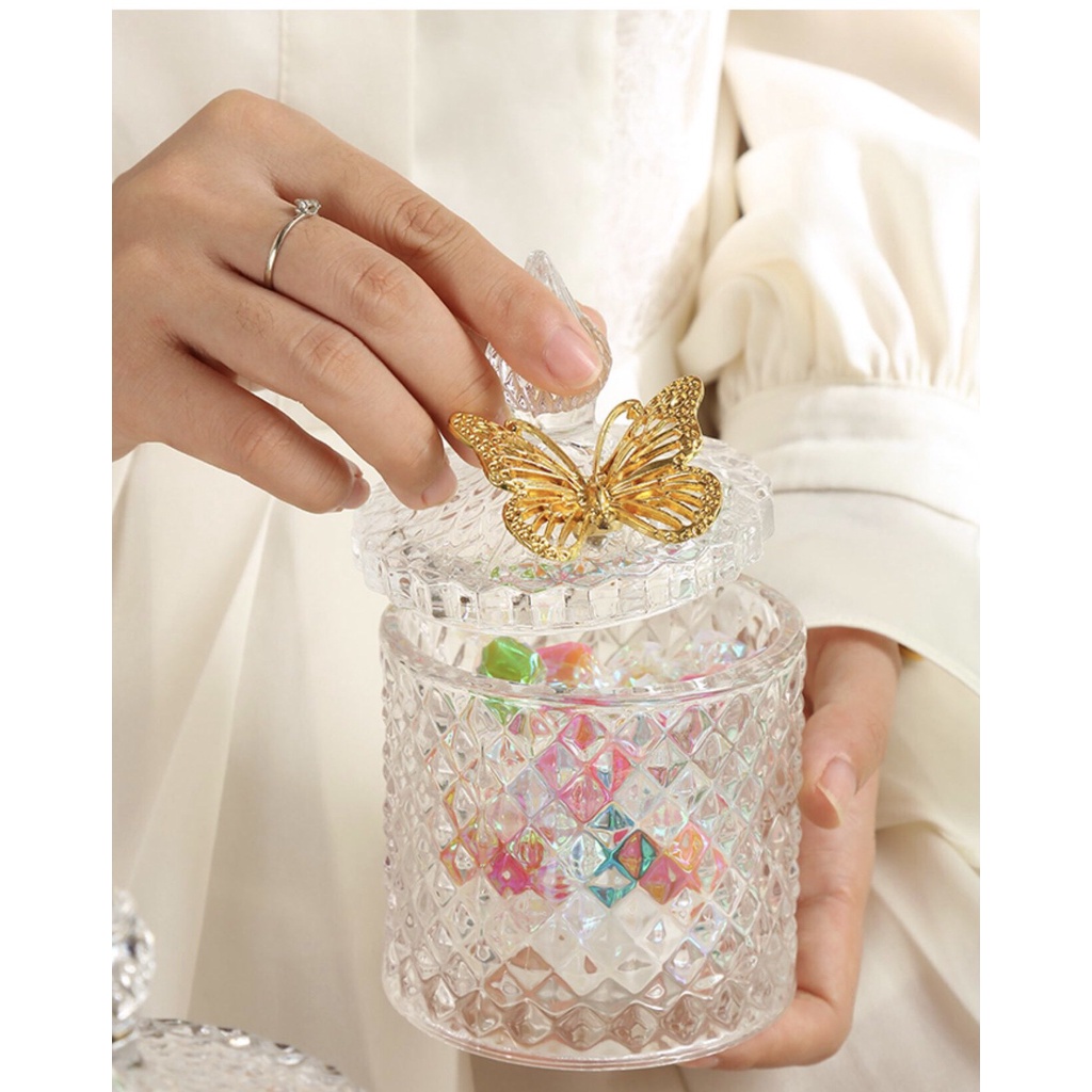 Nhà cửa & Đời sống > Trang trí nhà cửa > Khác || Hũ thủy tinh họa tiết bướm, kiểu dáng độc lạ, nhiều size, tinh tế, hũ để trang sức, decor hoặc kẹoCòn hàng