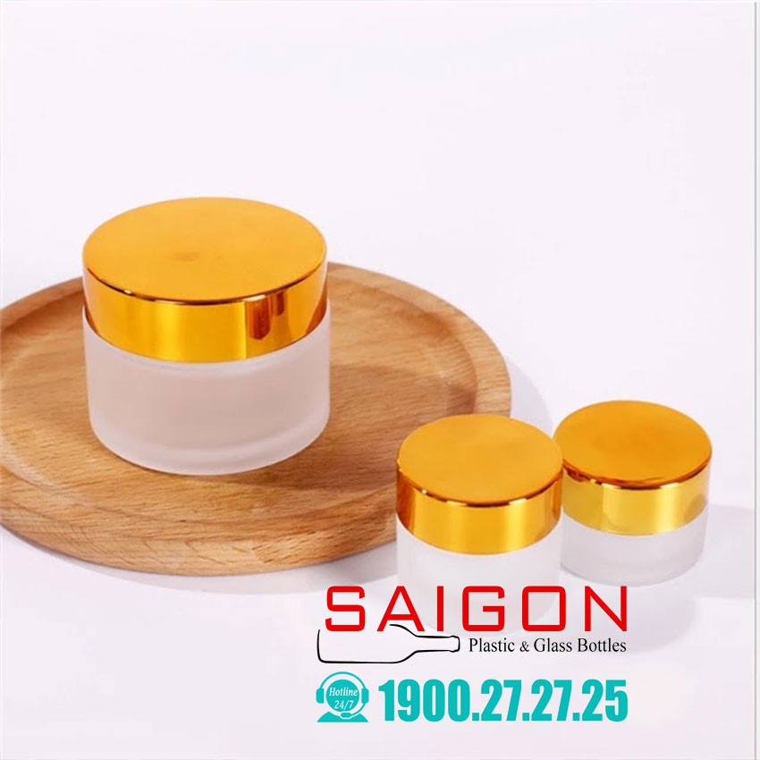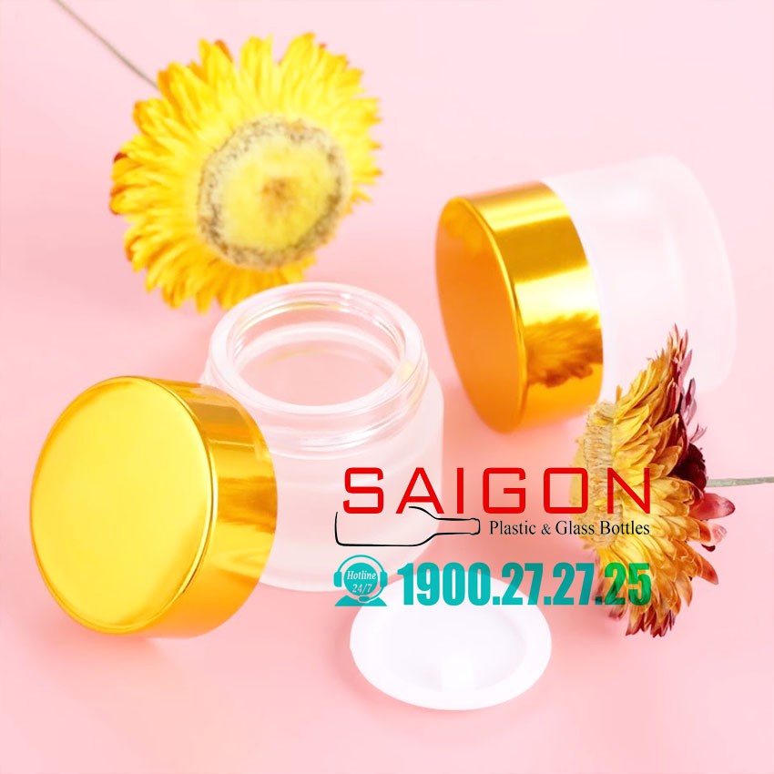 Hũ Thủy Tinh Mờ Đựng Kem Nắp Xi Vàng