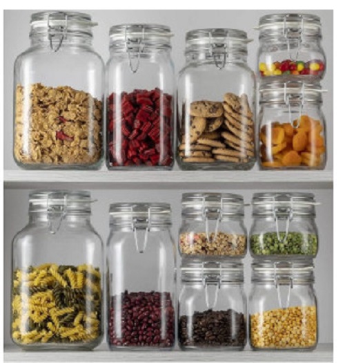 - Chứa thực phẩm khô: ngũ cốc, các loại đậu, đường, bột, cafe, các loại bánh kẹo, thực phẩm đã được chế biến hoặc sấy khô như mứt trái cây hoặc trái cây sấy khô…
