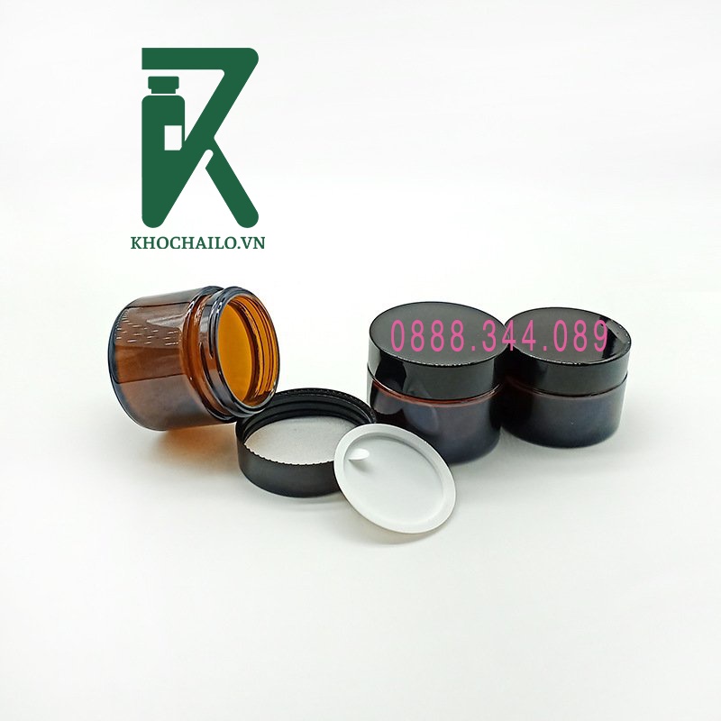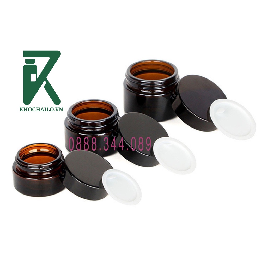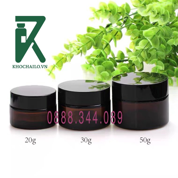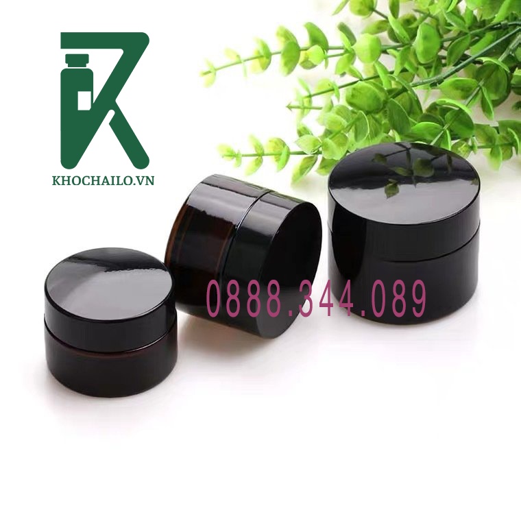 Nhà cửa & Đời sống > Chất khử mùi, làm thơm nhà > Khác || Hũ thủy tinh tròn nâu,Hũ chiết mỹ phẩm,Hũ đựng kem nắp đen 5gr,10gr,20gr,30gr,50gr,100grCòn hàng