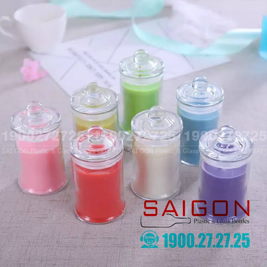 Giới thiệu Hũ Thủy Tinh Tròn Trụ Nắp Thủy Tinh Đựng Nến | Hũ Trơn không Trang Trí và Nến