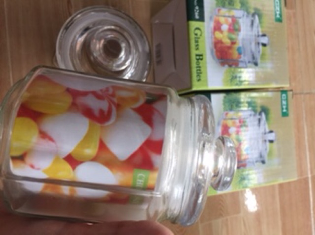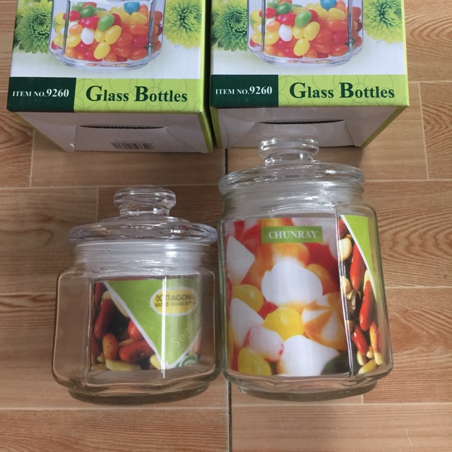 Hủ thủy tinh trưng mứt, hoa củ quả tết
