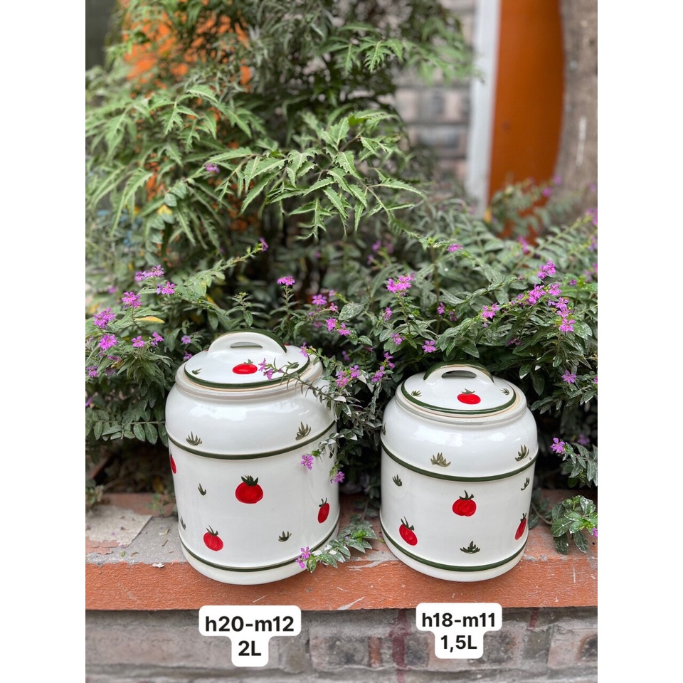 Hũ, vại muối dưa cà Gốm sứ Bát Tràng cực xinh yêu an toàn sức khoẻ mẫu hoa quả (ib chọn mẫu)