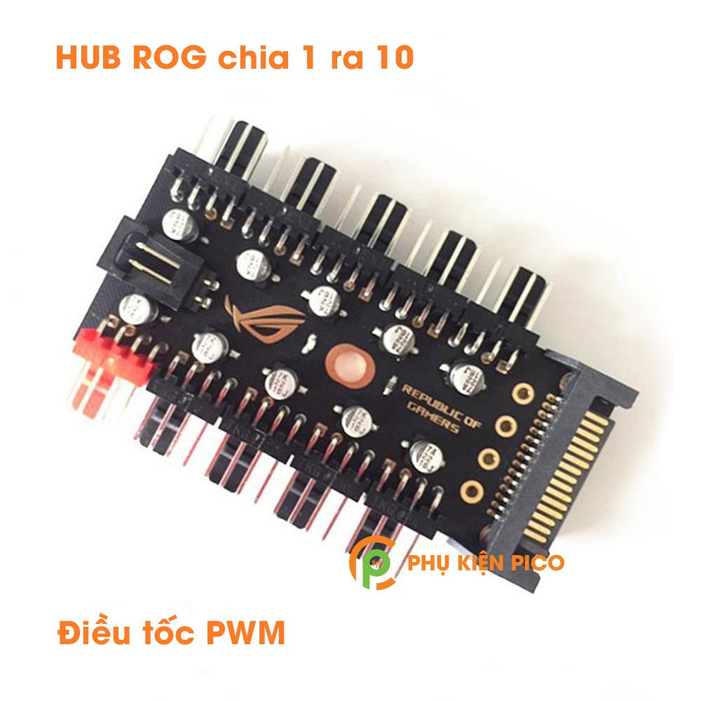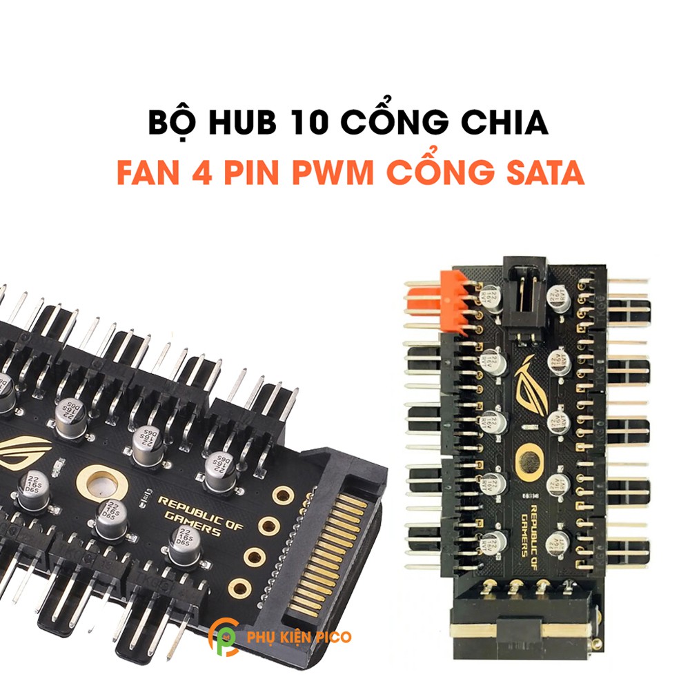 Bộ Hub 10 cổng chia Fan PWM 4 Pin hỗ trợ điều tốc, quạt tản nhiệt nguồn cấp điện cổng SATA, 10 tụ an toàn1. Tính năng của Hub 10 cổng chia Fan ROG