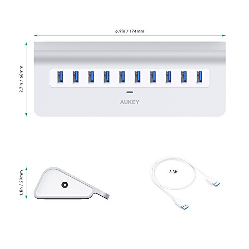 Giới thiệu Hub 10 cổng USB 3.0 Aukey CBH6 , Bộ chia cổng usb 3.0 aukey
