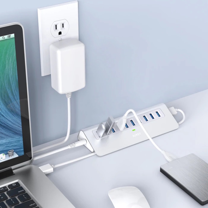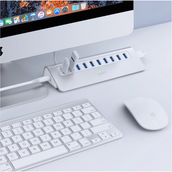 Hub 10 cổng USB 3.0 Aukey CB-H6 được thiết kế nhỏ, mỏng và hiệu quả tiết kiệm không gian bàn làm việc bạn và mở rộng thêm nhiều cổng kết nối của bạn