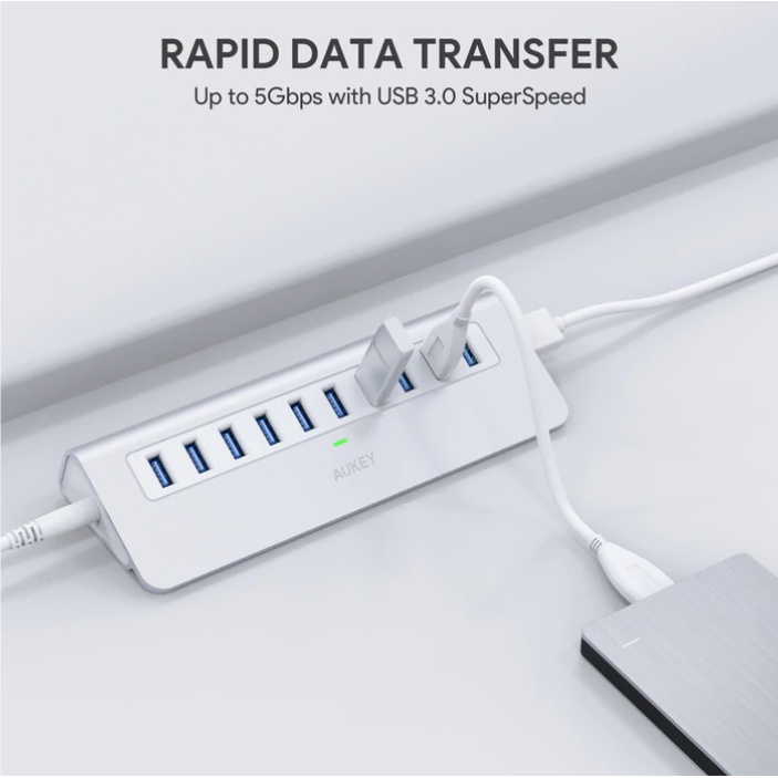Hub 10 cổng USB 3.0 Aukey CB-H6 hỗ trợ USB 3.0 truyền dữ liệu tốc độ cao, lên tới 5Gb/s.