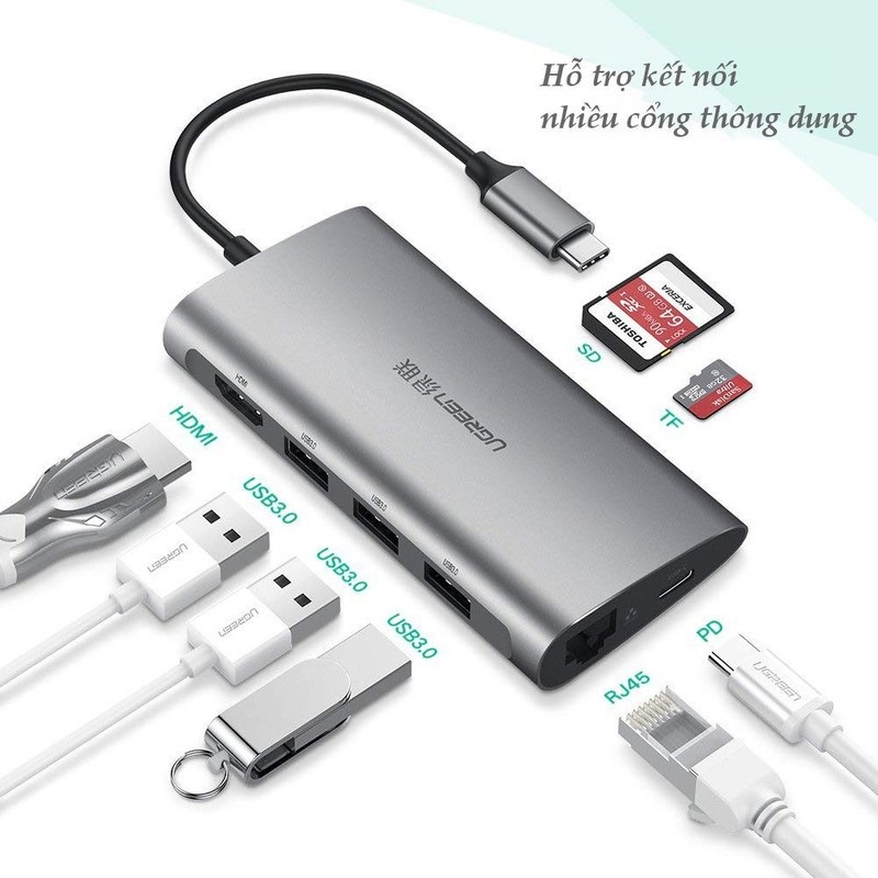 HUB 8 in 1 bộ chuyển USB Type C sang HDMI/Hub/USB 3.0/SD/TF/Lan Gigabit Ugreen 50538 cao cấp