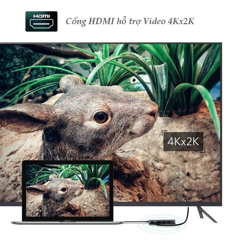 - Hub chuyển đổi đa năng USB Type C Chính Hãng Ugreen 50538 giải pháp hoàn hảo giúp kết nối MacBook với cổng USB Type C ra màn hình HDMI trên tivi với độ phân giải lên đến 4K/30hz ( 4096x2160p )