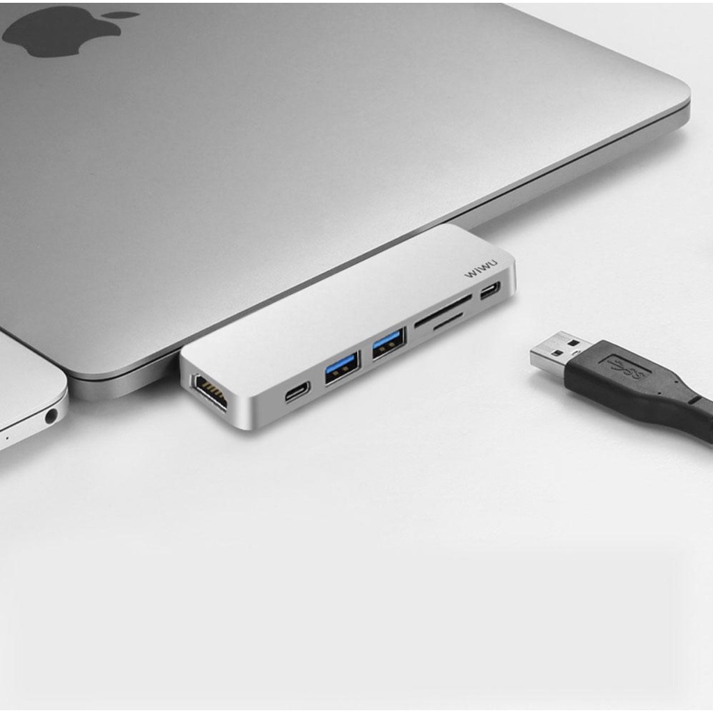Máy tính & Laptop > Phụ Kiện Máy Tính > Bộ chia cổng USB & Đọc thẻ nhớ || HUB adapter chuyển đổi 7-in-1 WIWU T8 hỗ trợ MacbookCòn hàng