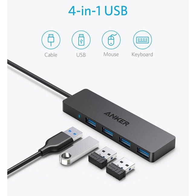 Máy tính & Laptop > Phụ Kiện Máy Tính > Bộ chia cổng USB & Đọc thẻ nhớ || Hub ANKER chia cổng USB 3.0 Ultra Slim 4 Cổng - A7516 cho Máy Tính Laptop Macbook Tốc độ cao Siêu Mỏng NhẹCòn hàng