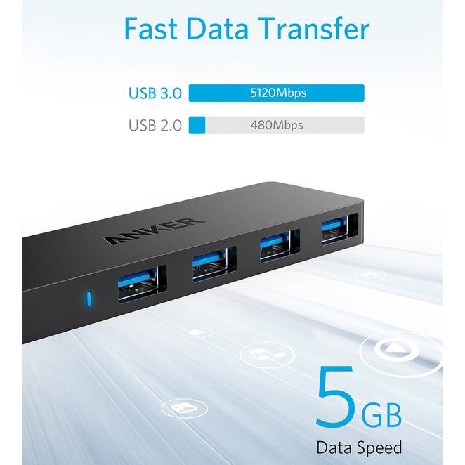 Bộ chia cổng Hub ANKER USB 3.0 Ultra Slim 4 Cổng - A7516 cho Máy Tính Laptop Macbook Tốc độ cao Siêu Mỏng Nhẹ