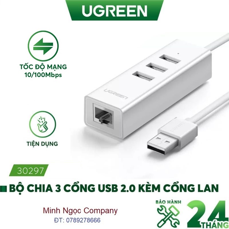 Máy tính & Laptop > Phụ Kiện Máy Tính > Bộ chia cổng USB & Đọc thẻ nhớ || HUB Bộ chia 3 cổng USB 2.0 kèm cổng mạng Lan Ethernet RJ45 10/100 Mbps chính hãng Ugreen 30297 cao cấpCòn hàng